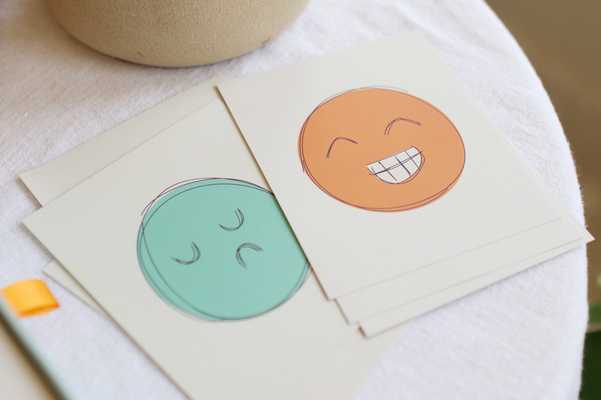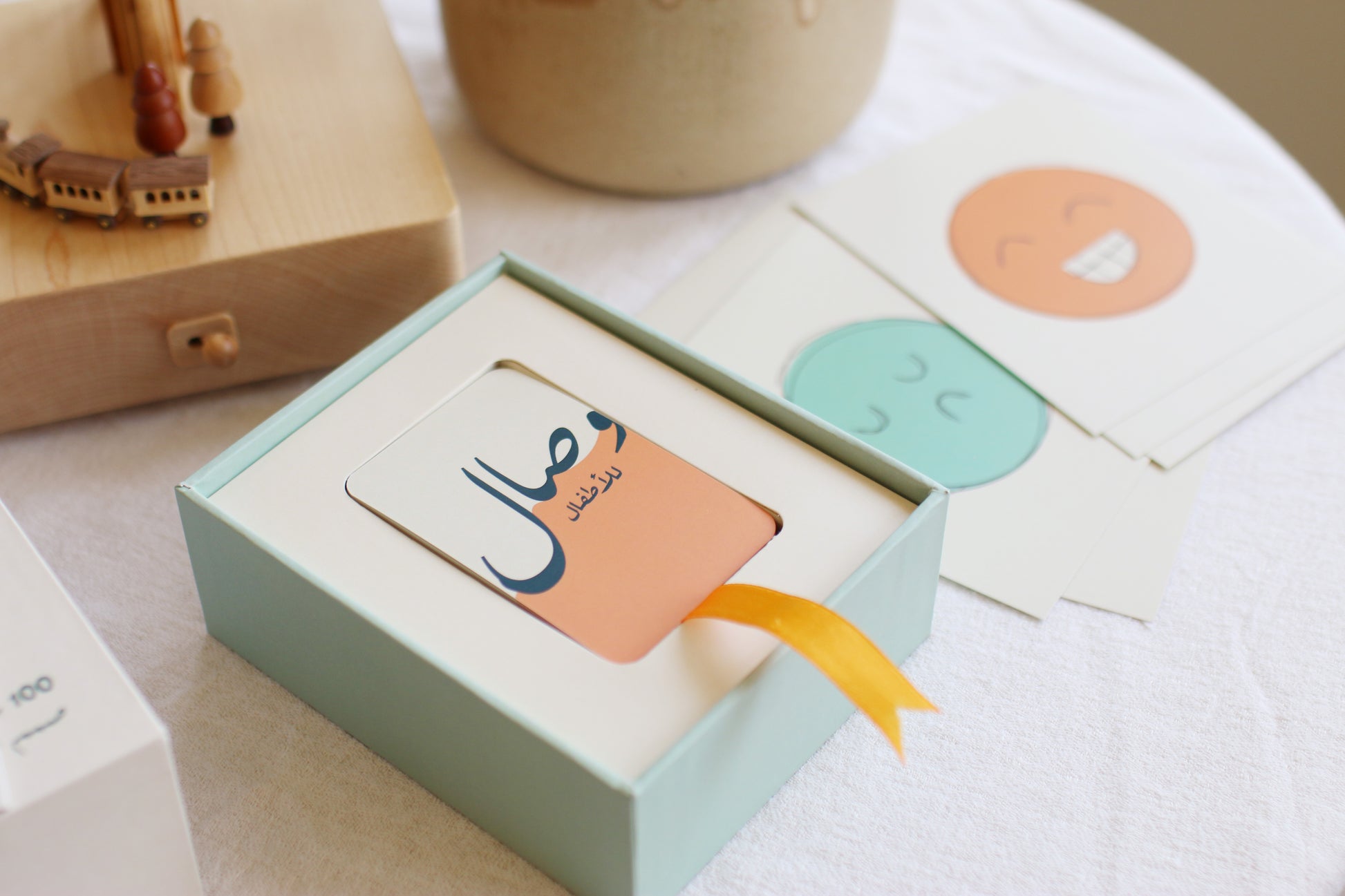 في العلبة بتلاقون وجوه تعبيريه مختلفة و يقدر الطفل يستخدمها للتعبير ..